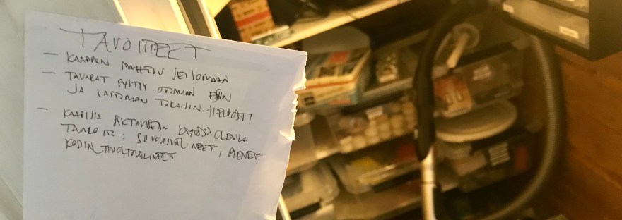 Sain kutsun järjestämään portaiden alla sijaitsevaa siivouskomeroa. Asiakkaan suurimpana haasteena oli tilan käytettävyys, komeroon ei mahtunut sisälle seisomaan, vaan tavaroita piti koukkia komeron uumenista tai vaihtoehtoisesti tyhjentää ensin tavaroita komerosta, jotta pääsisi käsiksi tarvitsemaansa tavaraan. Kategoriat olivat puolestaan jo hyvin suunniteltuja ja asiakkaalla oli jo valmiiksi laatikoita, joissa hän säilytti saman kategorian tavaroita. Aluksi määrittelimme… Jatka lukemista Case siivouskomero